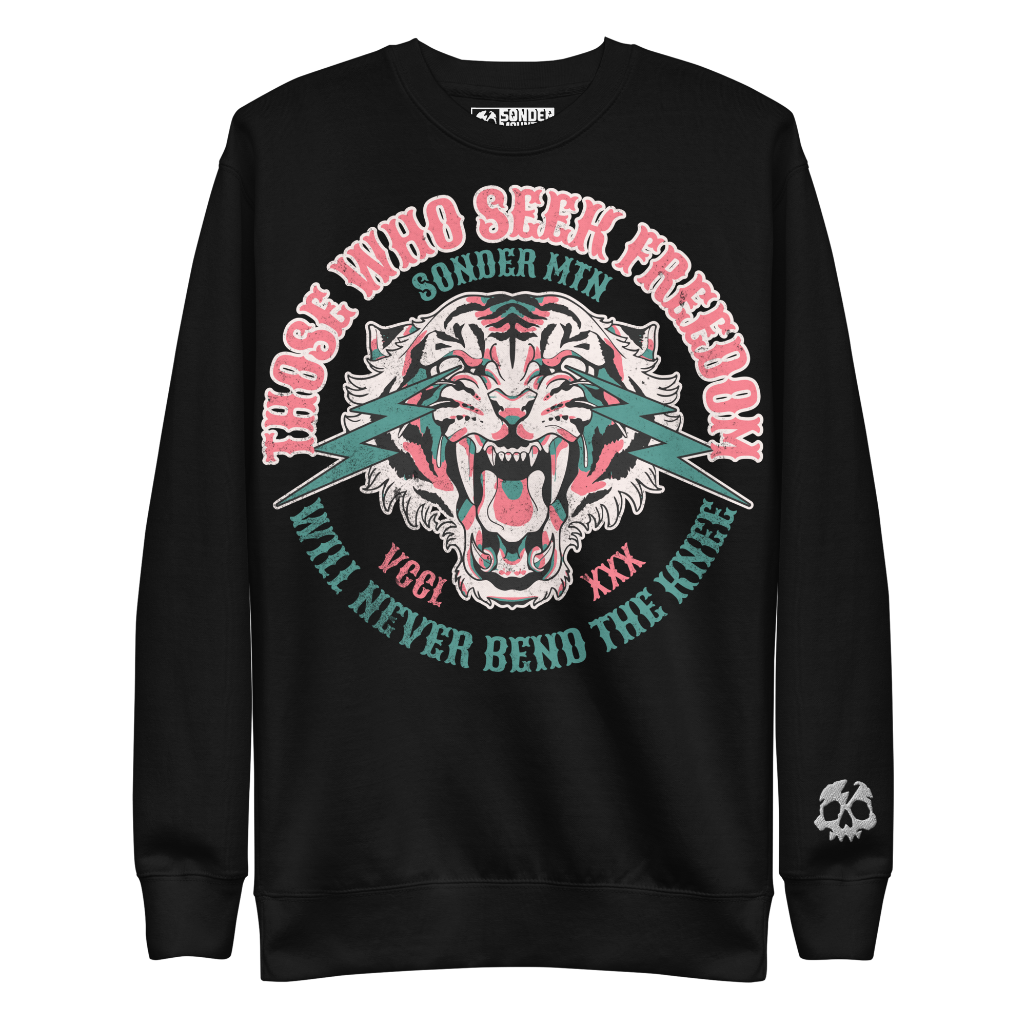 Built from heavyweight, premium fleece, this sweatshirt is designed for durability and everyday wear. The American traditional tiger graphic honors a visual language forged by sailors, workers, and rebels — people who wore their values where they could be seen because silence was never an option.