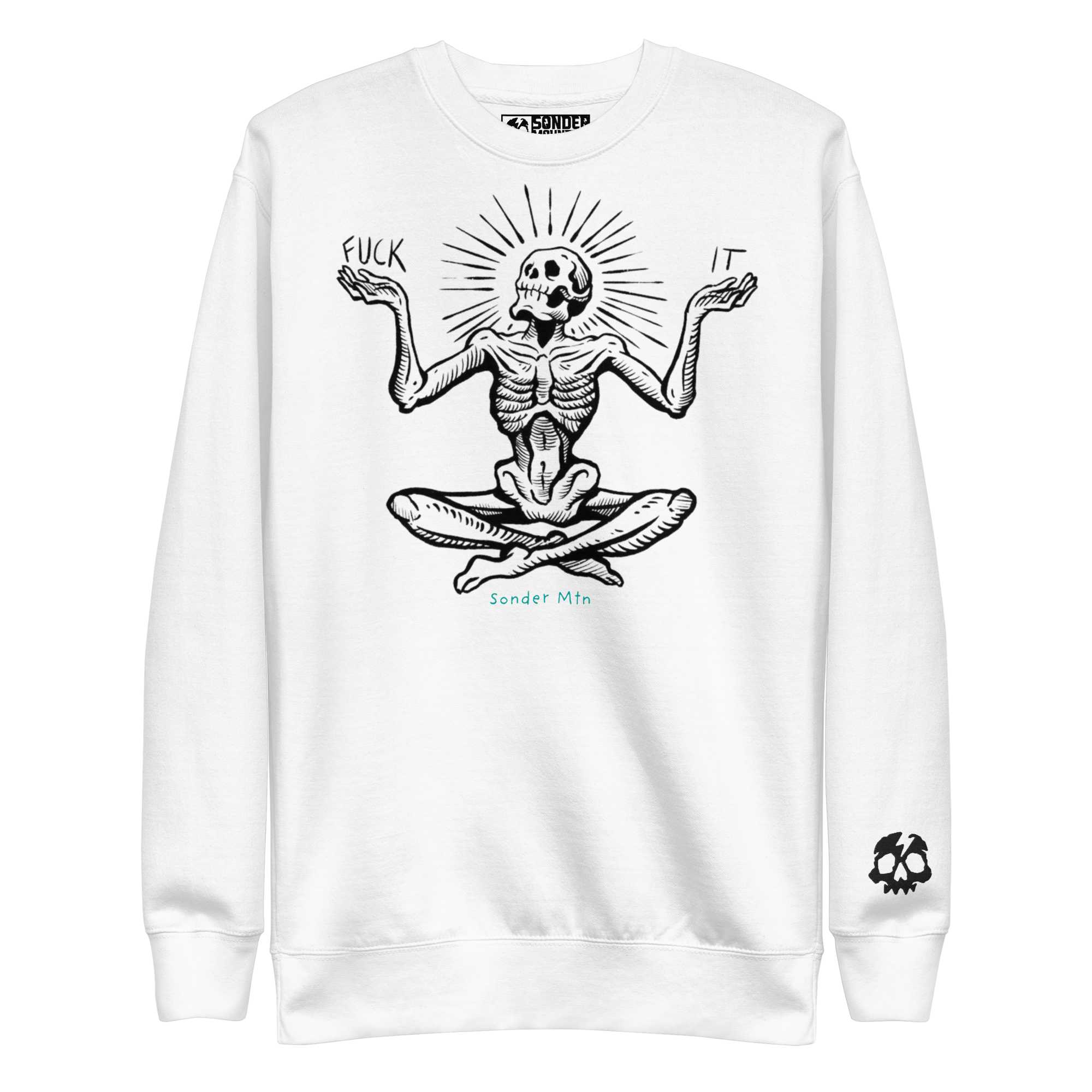 <p>Just another case of the “Fuck-It’s.” Let it all go—expectations, pressure, perfection—and wear your attitude like armor. This Sonder Mountain original blends irreverence with calm: a skeletal figure in full zen, radiating both enlightenment and defiance.</p>